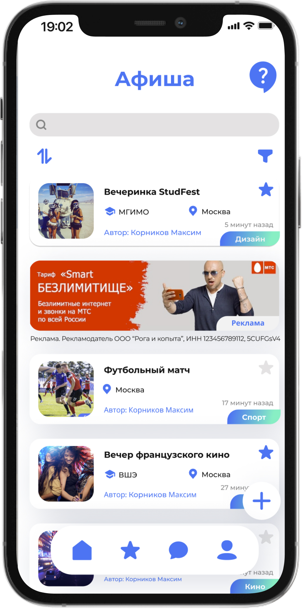 Стандартное объявление в ленте в сервисах "Афиша", "Работа", "Знакомства"